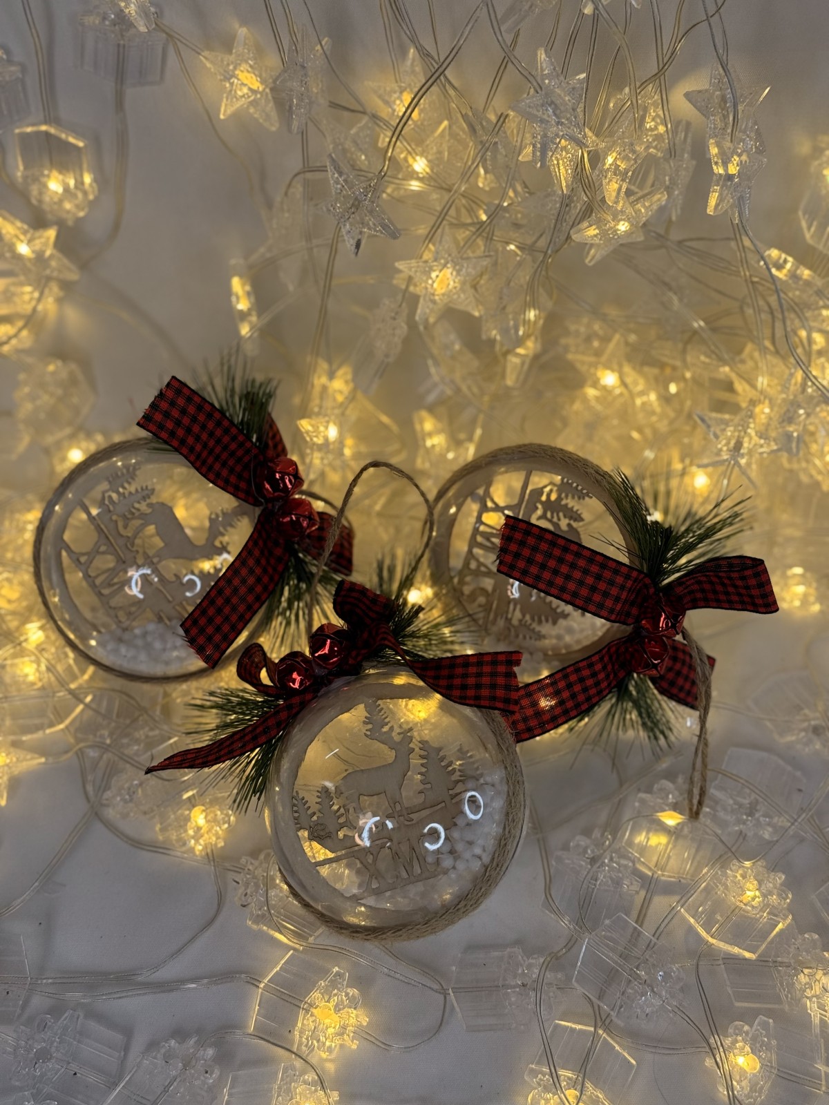 საახალწლო ბურთების ნაკრები (3 ცალი) შექმნილია თქვენი ნაძვის ხისა და საახალწლო დეკორის გასალამაზებლად. ეს ბრჭყვიალა და ელეგანტური ბურთები მოაქვს დღესასწაულის სითბო და ჯადოსნური განწყობა.