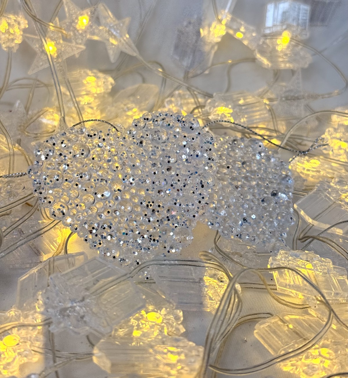 შექმენით თბილი და საზეიმო გარემო საახალწლო აქსესუარი გულით. ეს ელეგანტური და სიმბოლური დეკორი შესანიშნავი დამატებაა საახალწლო მორთულობისთვის.